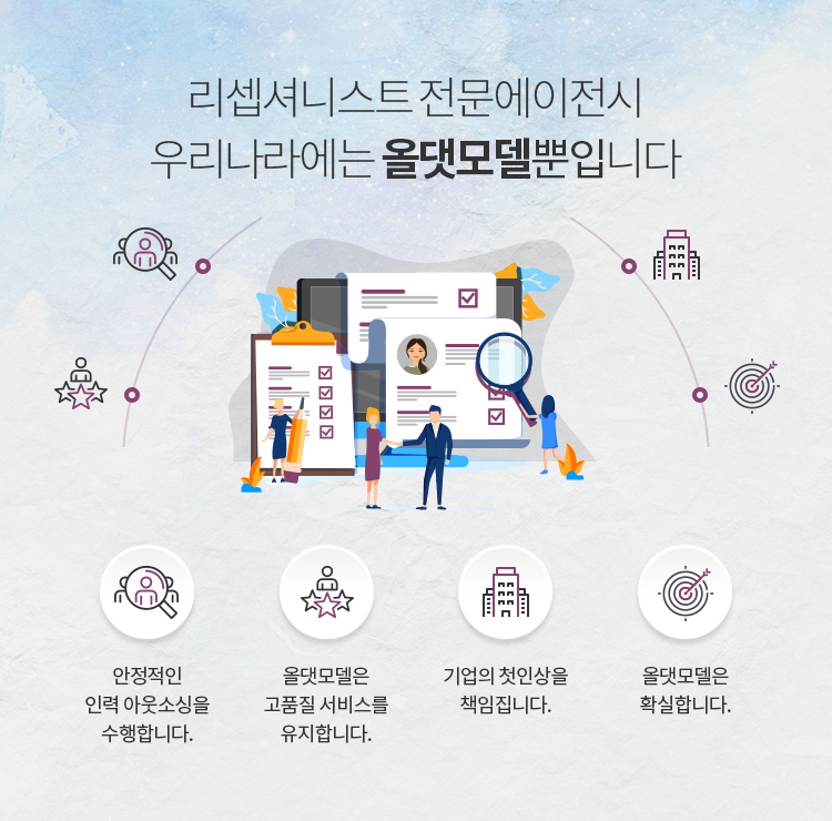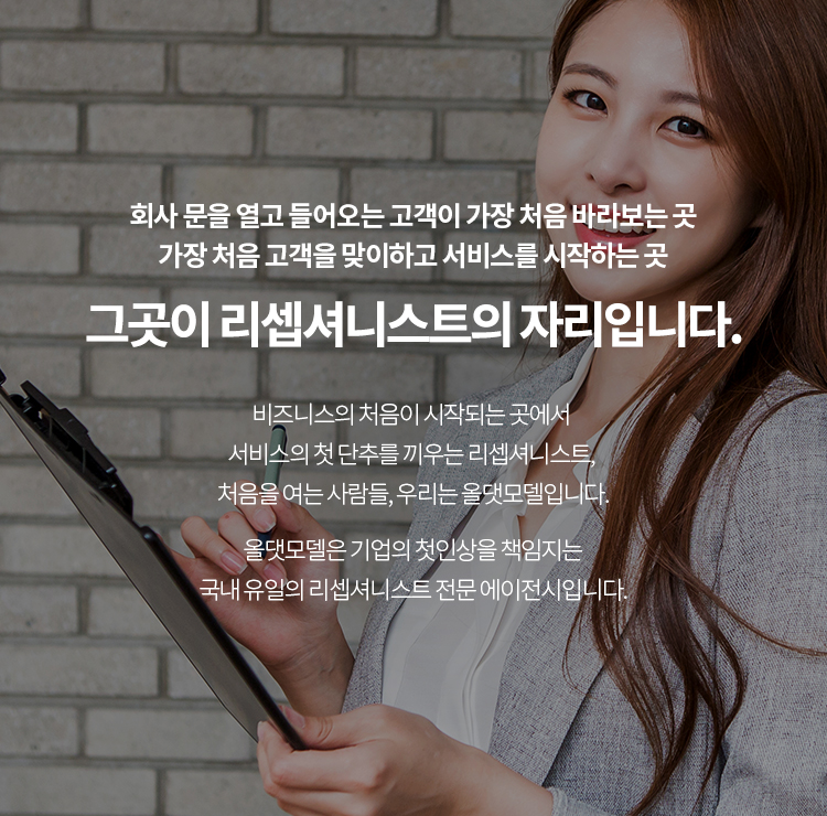 올댓모델의 리셉셔니스트가 첫인상을 책임집니다.
